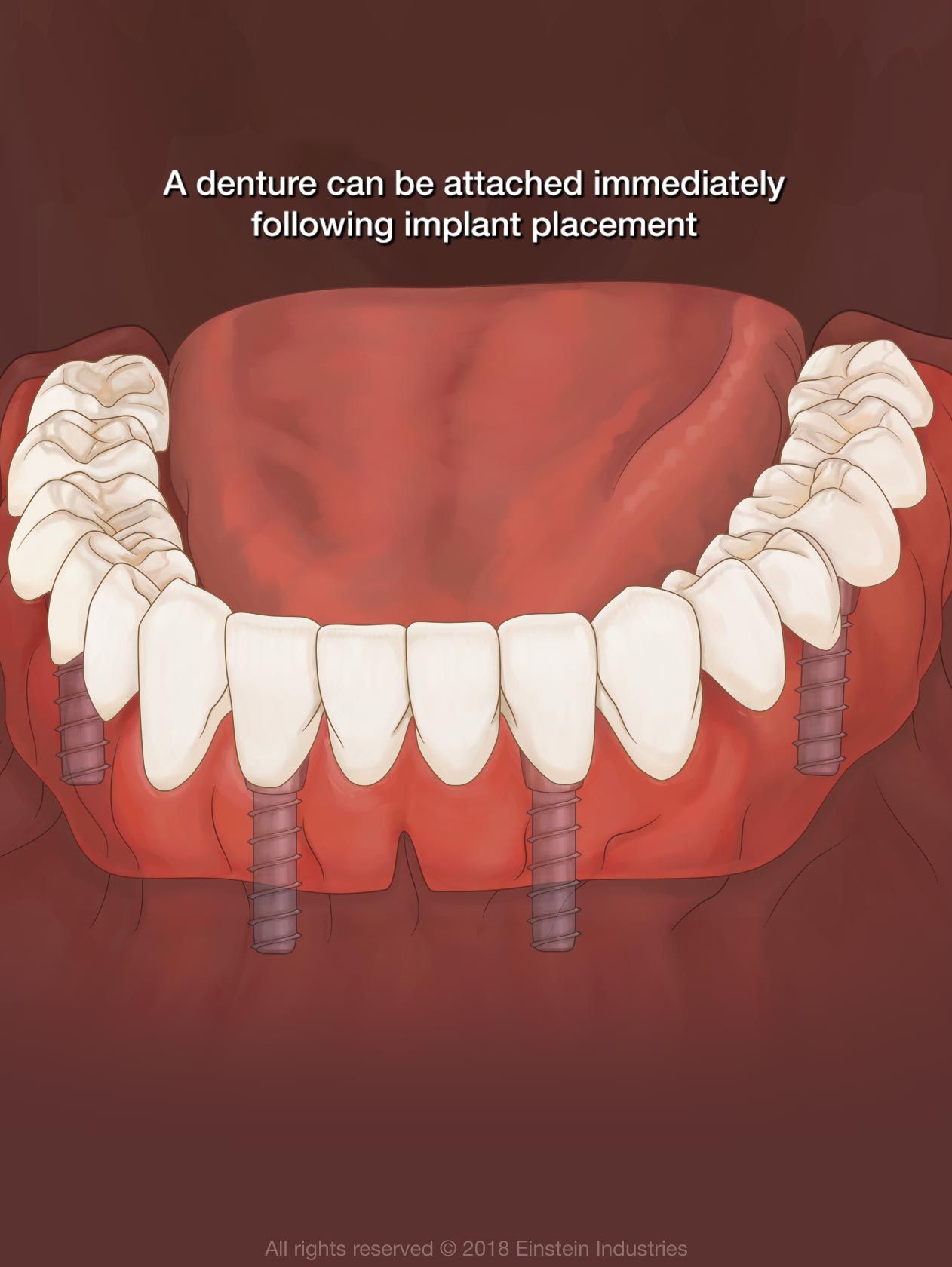 The Teeth in a Day procedure allows your dentist to attach temporary teeth at the same time as your implant placement. You wear your temporaries throughout the healing process.